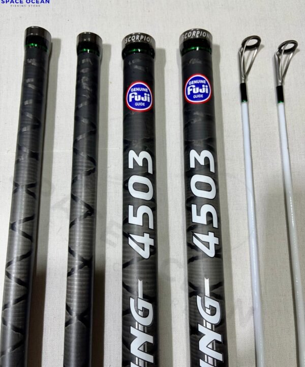 La canne surfcasting 4,50 m est conçue pour les pêcheurs passionnés qui recherchent puissance, précision et fiabilité. Grâce à son blank 100% carbone renforcé par la technologie Triaxial Carbone TCR, elle offre une solidité exceptionnelle tout en gardant une grande légèreté avec seulement 590 g.